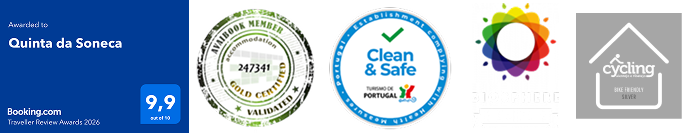Todos os quartos são climatizados, com casa de banho privada, redes mosquiteiras nas portas e janelas e terraços independentes com vista para o pomar e olival.